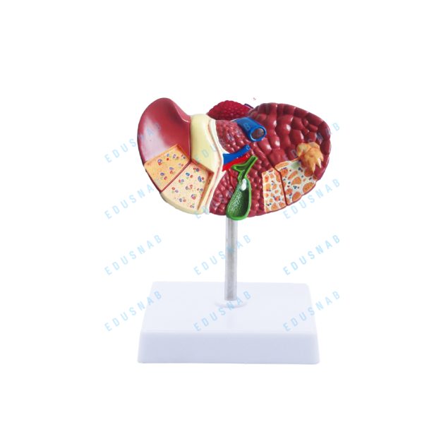 Полноразмерная модель точно отображает анатомию печени человека, демонстрируя распространенные патологии, такие как цирроз (Перегородочный и узловой), обструкция желчных путей, камни в желчном пузыре и опухоли, предоставление комплексной наглядной помощи для обучения и преподавания.