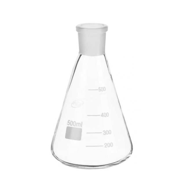 Колба коническая (Эрленмейера) со шлифом, самый популярный тип лабораторной посуды, применяемый во многих лабораторных задачах: фильтрование, перегонка, выпаривание, синтез, хранение химических реагентов. Также, такие колбы используют при аналитических процессах, в частности, при титриметрическом анализе. Выступая приемником при дистилляции, принимает участие в перекристаллизации веществ органической природы из легколетучих растворяющих субстанций. Микробиологи активно применяют конические колбы для формирования колоний бактерий.